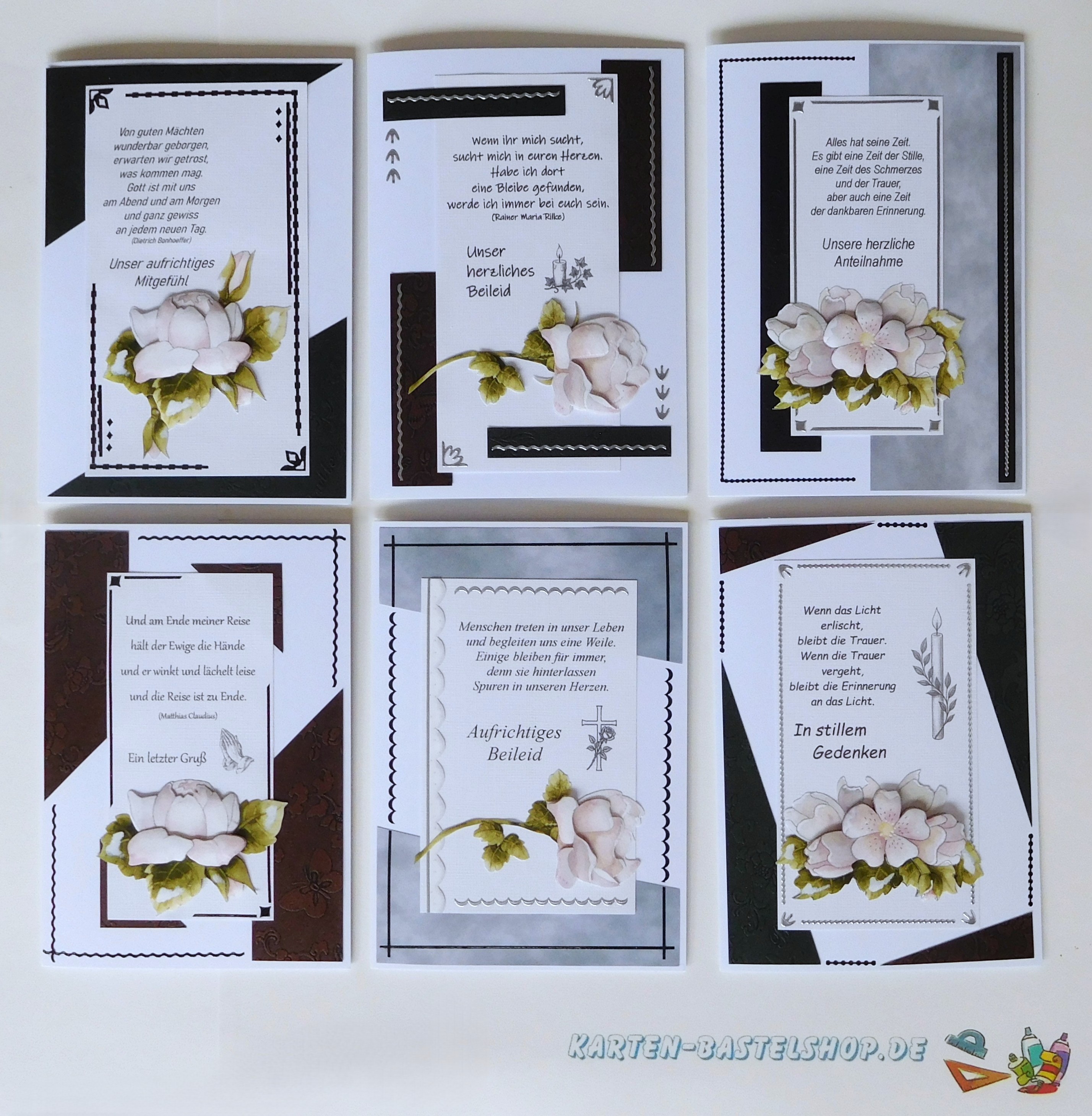 Im Oktober zeigen wir euch, wie ihr stilvolle Kondolenzkarten mit ruhigen Farben und feinen Details bastelt. Schritt für Schritt entstehen sechs edle Karten, die Trost spenden und Raum für persönliche Worte lassen. Das passende kostenlose PDF mit Textauflegern findet ihr direkt im Basteltipp!