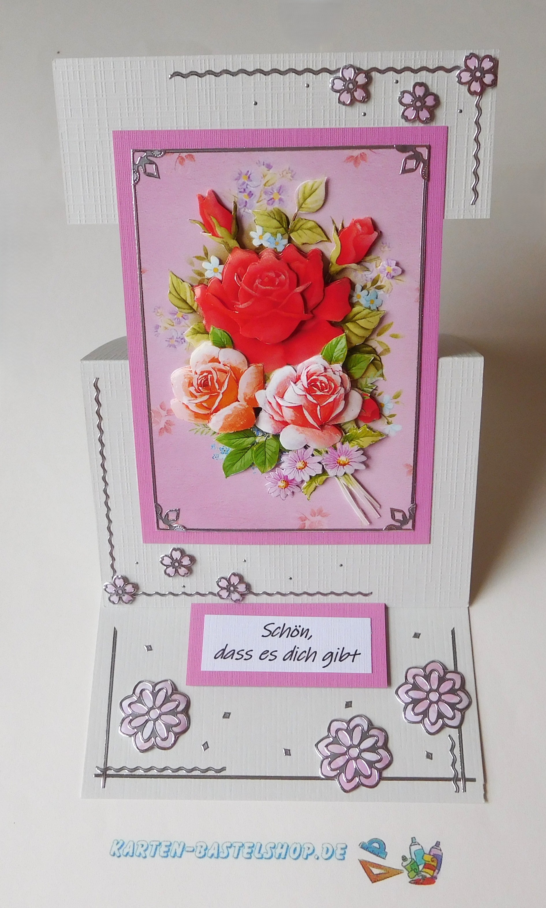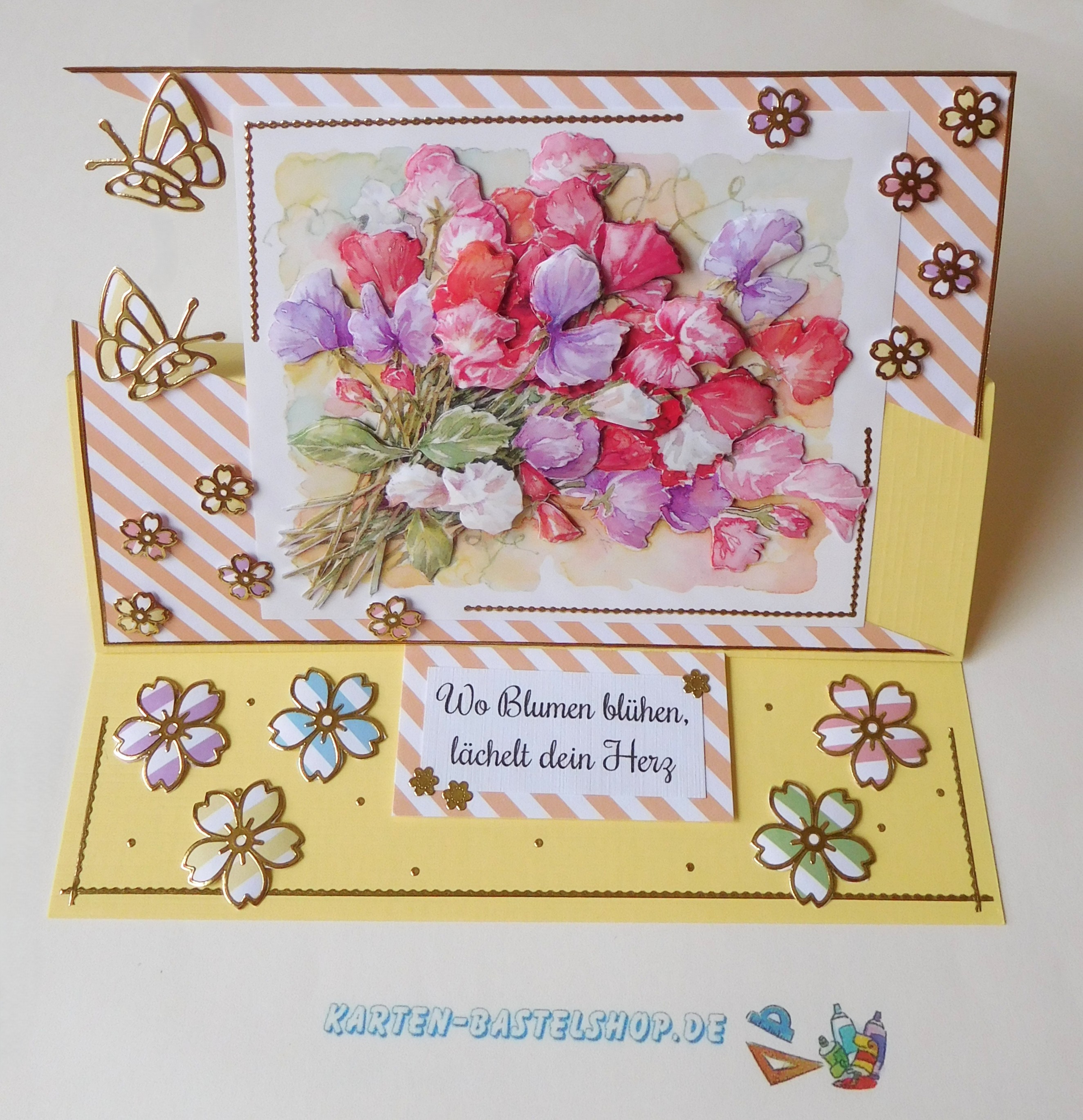 Ein Blumengruß erfreut immer – sei es zum Geburtstag, zur Genesung oder einfach als kleine Aufmerksamkeit zwischendurch. Noch schöner ist es, wenn sich die Karte nicht nur öffnen, sondern auch aufstellen lässt. Dann wird aus einer einfachen Grußkarte ein besonderer Hingucker, der den Empfänger jedes Mal aufs Neue erfreut.