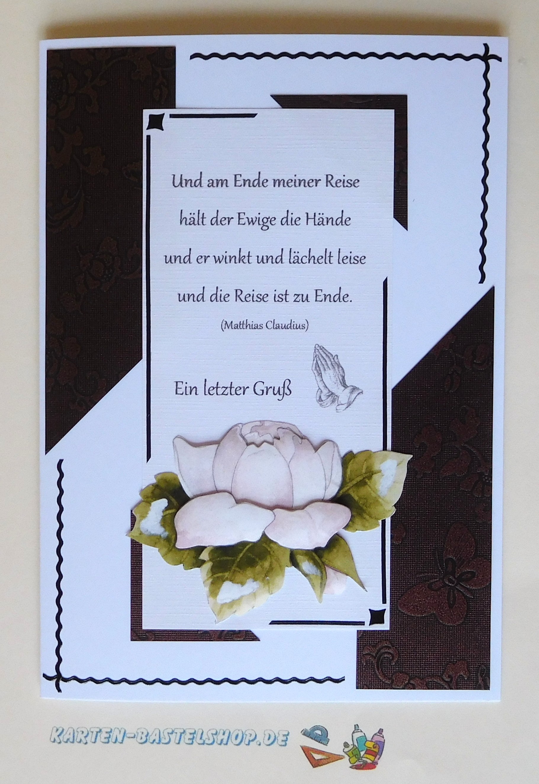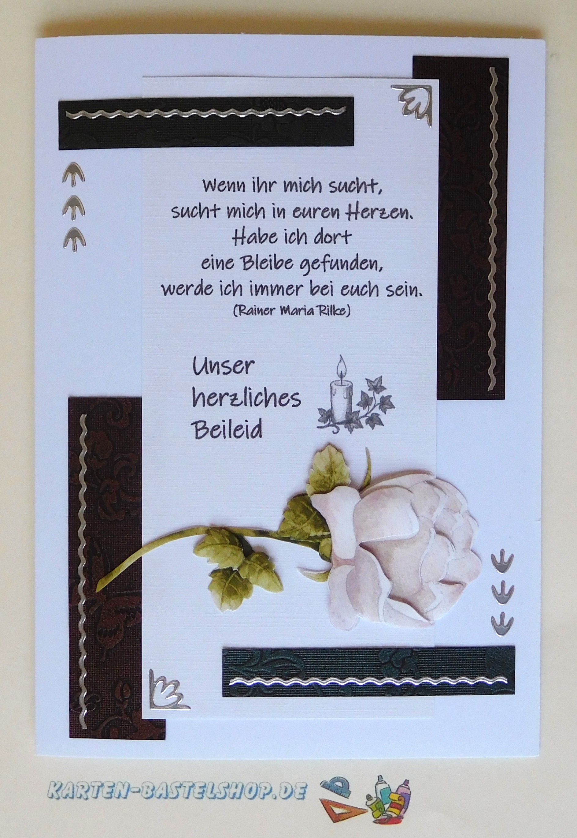 Dazu passen die schwarzen Sticker von Jeje Nr. 1.4200 und Starform Nr. 1016 sowie der Kartenaufleger Nr. 5 aus der PDF-Datei „Kartenaufleger Trauerkarten“. Die Verbindung von Braun und Schwarz wirkt edel und zurückhaltend – genau richtig für einen stillen Anlass.