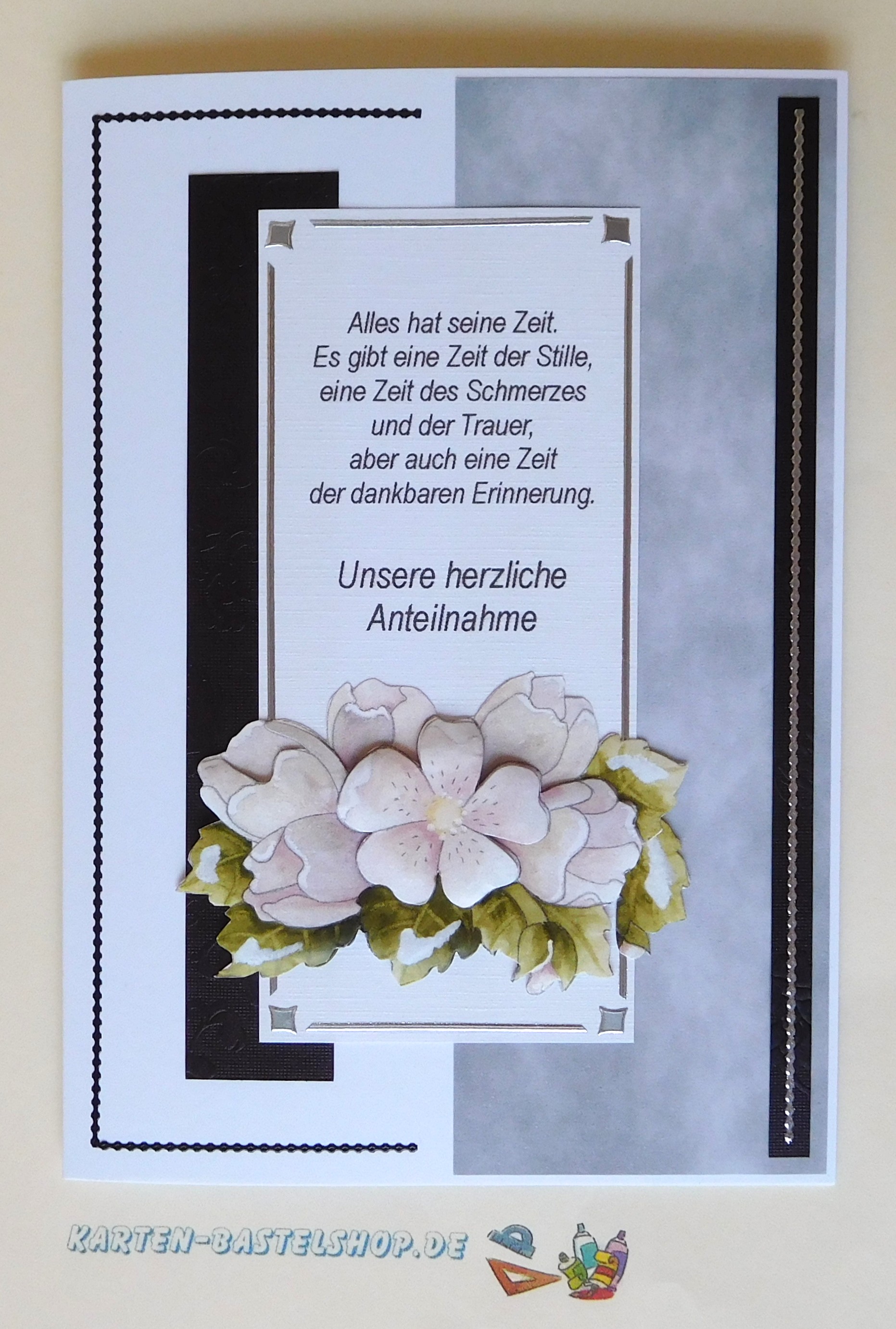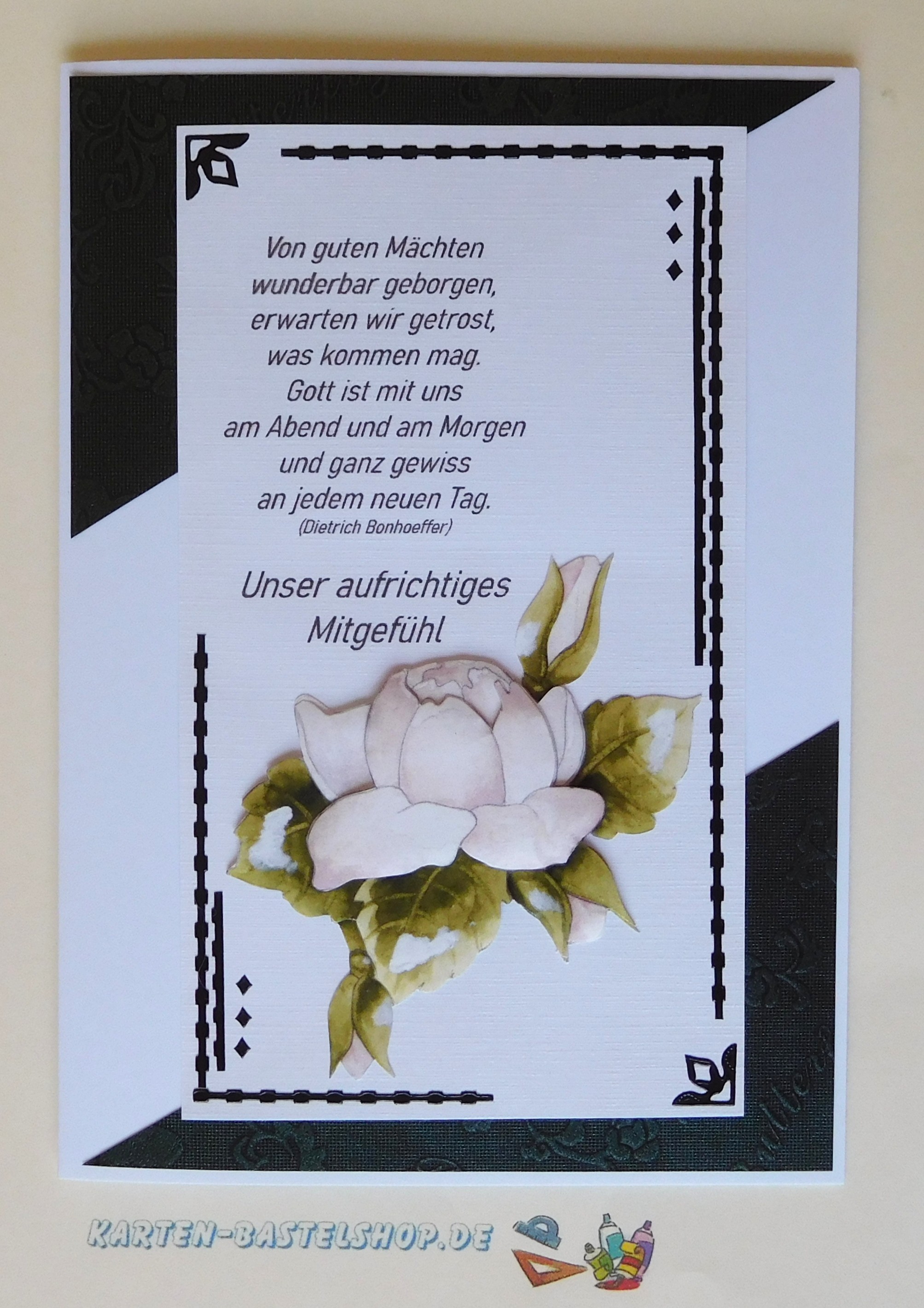 Diesmal widmen wir uns einem besonderen Thema: Kondolenzkarten. Auch wenn es ein eher stiller Anlass ist, werden solche Karten nach wie vor häufig gebraucht – sei es als Zeichen des Mitgefühls oder um eine kleine Geldgabe für die spätere Blumenbepflanzung zu überreichen. Wir zeigen Euch, wie Ihr mit einem einfachen Blumenbogen und passenden Textauflegern einfühlsame Karten gestalten könnt, die Trost spenden und dennoch liebevoll wirken.