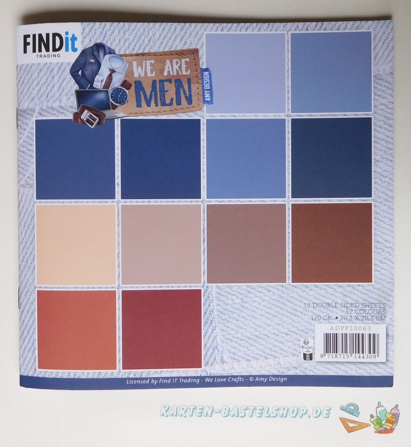 Dieses Paperpack von Amy Design ist die perfekte Ergänzung zur "We are Men" - Kollektion. Die Bögen im Paperpack sind mit 20,3 x 20,3cm recht groß und lassen sich vielseitig verwenden. Die 12 Bögen sind jeweils unifarbig bedruckt, wobei die Vorder- und Rückseite jeweils einen anderen Farbton haben.