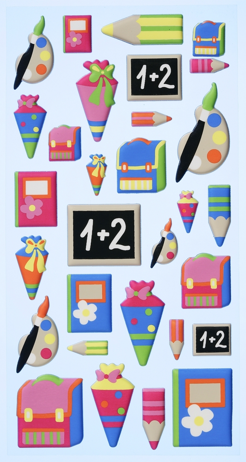 Diese Softysticker mit fröhlichen Motiven rund um Schule und Einschulung eignen sich ideal für den besonderen Start in die Schulzeit. Schultüten, Ranzen, Stifte, Bücher und kleine Rechentafeln sind farbenfroh gestaltet und leicht erhaben gearbeitet.
